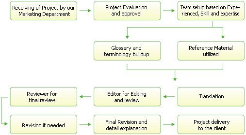 Cada proyecto es estudiado a fondo antes de que nuestros equipos experimentados comiencen a traducirlos. Después de la traducción cada proyecto pasa por nuestro procedimiento formal de revisión y luego es editado por un experto de ese tema antes de su entrega. Al utilizar nuestra propia base de datos de traductores, los investigamos y seleccionamos antes de asignar su proyecto, nos aseguramos de el equipo de traductores, revisores y editores sea el más calificado y apropiado para trabajar en su proyecto. Tomamos en serio la confianza de nuestros clientes y mantenemos la calidad como nuestro principio guía. Después de todo, lo que cuenta no es sólo ganar clientes sino mantenerlos satisfechos, proyecto tras proyecto. Seguimos estrictamente nuestros procedimientos de control de calidad.
